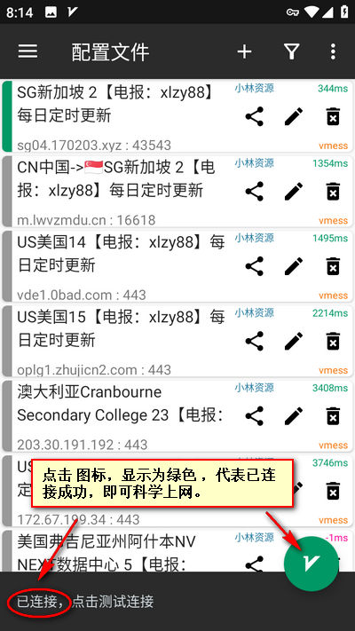 七、点击图标,显示为绿色,代表链接成功,即可科学上网。