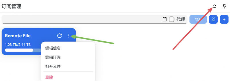 如遇导入失败情况可勾选代理选项,即通过代理更新订阅。