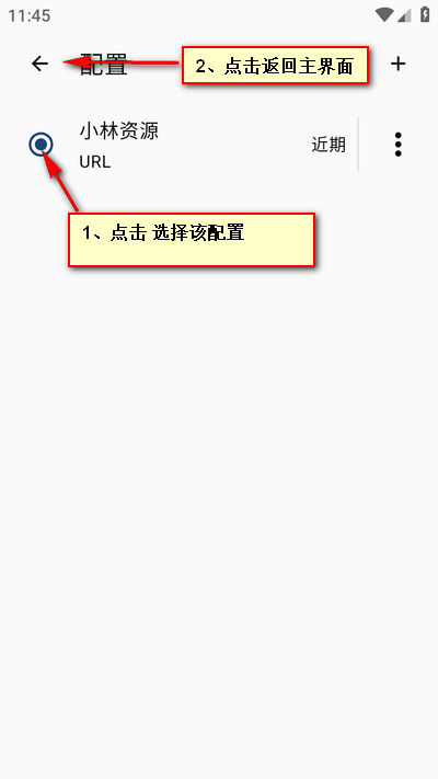 四、1.填写名称可以任意填写,方便识别,如:小林资源,2.粘贴已复制的订阅链接,3.点击保存设置